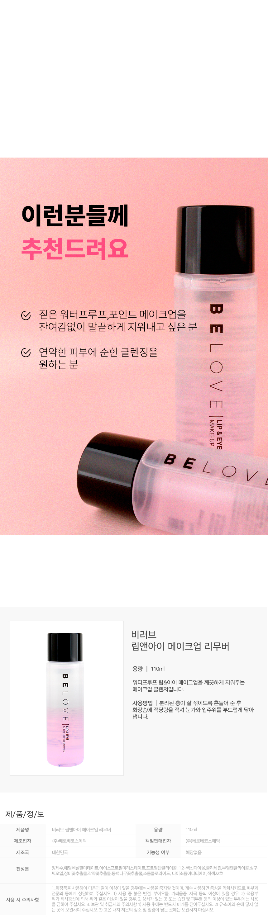 비러브 립앤아이 메이크업 리무버 110ml